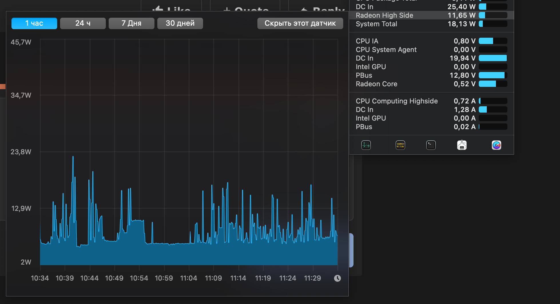 Macbook always in closed lid mode and Radeon works in Opera browser.