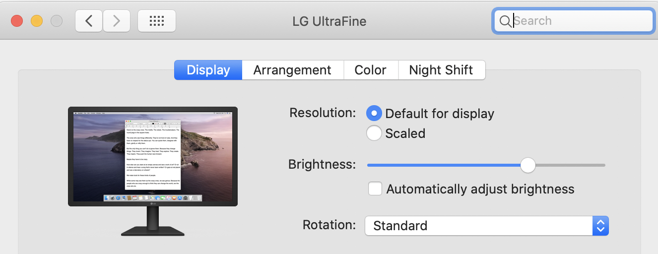 - Resolutions and refresh-rate used in MBP-2019 and on the LG screen