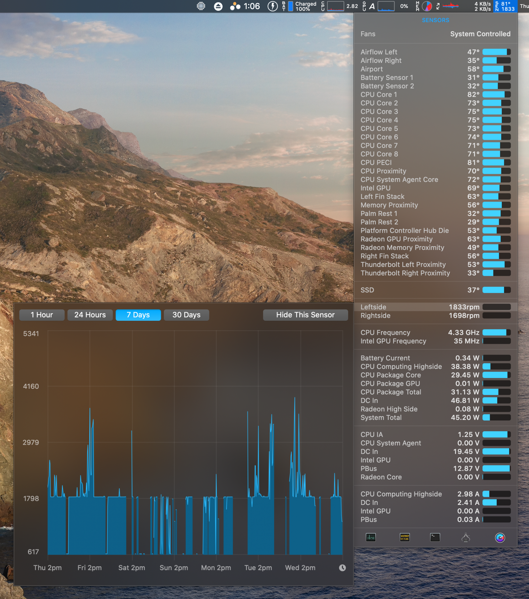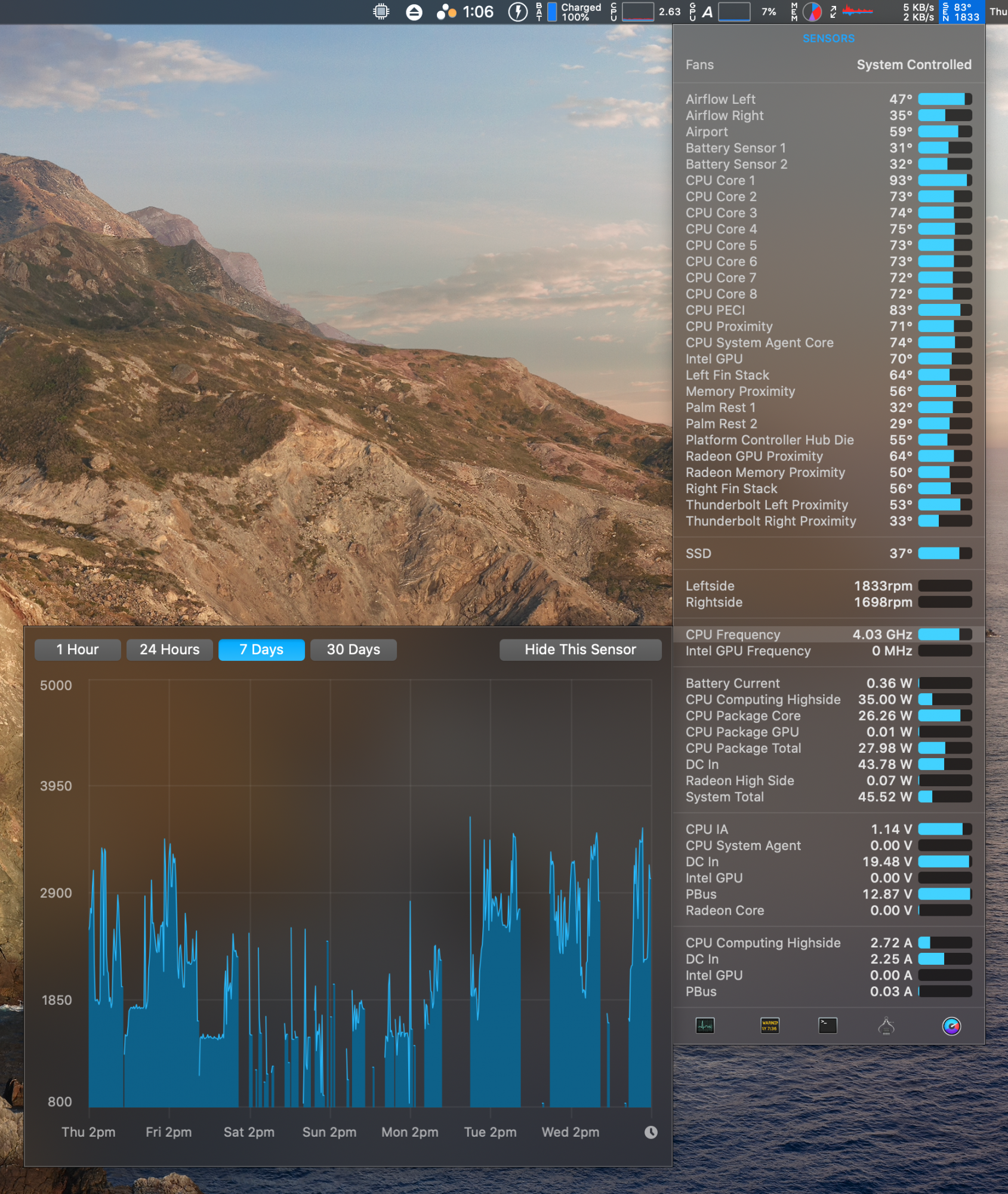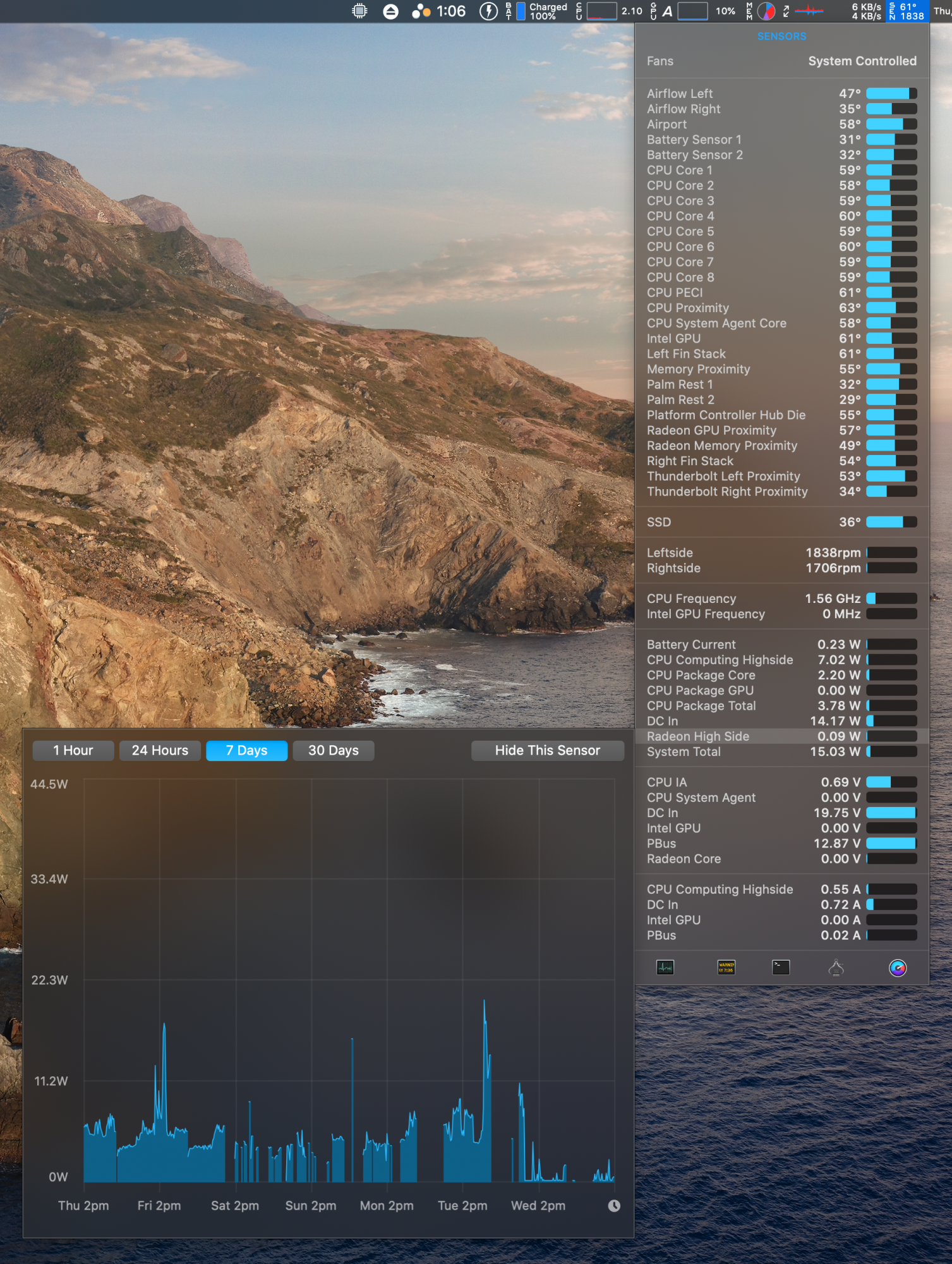 Did Apple change something just now? I got an alert for a supplemental update, 10.15.5 or something. Said it was for security and recommended for all users. Sorry wish I took a screenshot of it. But now with the monitor plugged in, my CPU highside went from 18W to 6W or lower. (Radeon still high though) Idle my temps are reading around 50C. Which they where 60C+ before update. I can still hit the low 60C mark pretty easy with Sketch, Notion, Outlook, Teams, Slack and a few Chrome tabs open to do it. Wishful thinking perhaps, but I'll keep an eye on it tomorrow through a full day of work. Thoughts? Anyone else do an update recently?