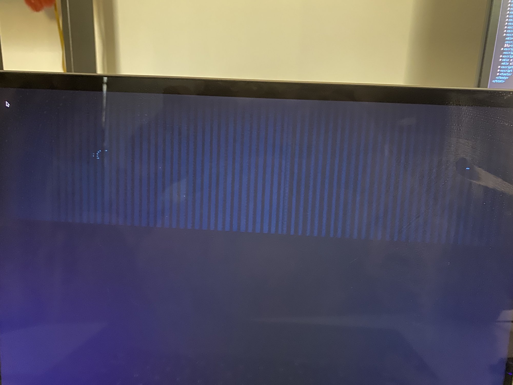 After a while, with the lid opened, those lines disappeared by themself and the screen is "normal" now.