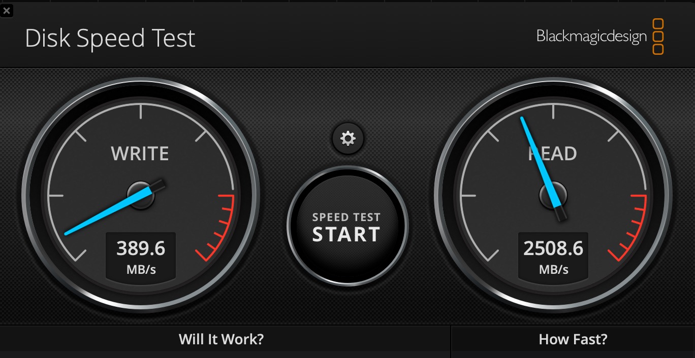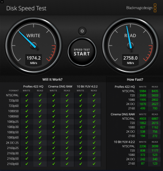 What results are you getting when testing the 512, 1TB and 2TB SSD speeds with Blackmagic Speed Test?