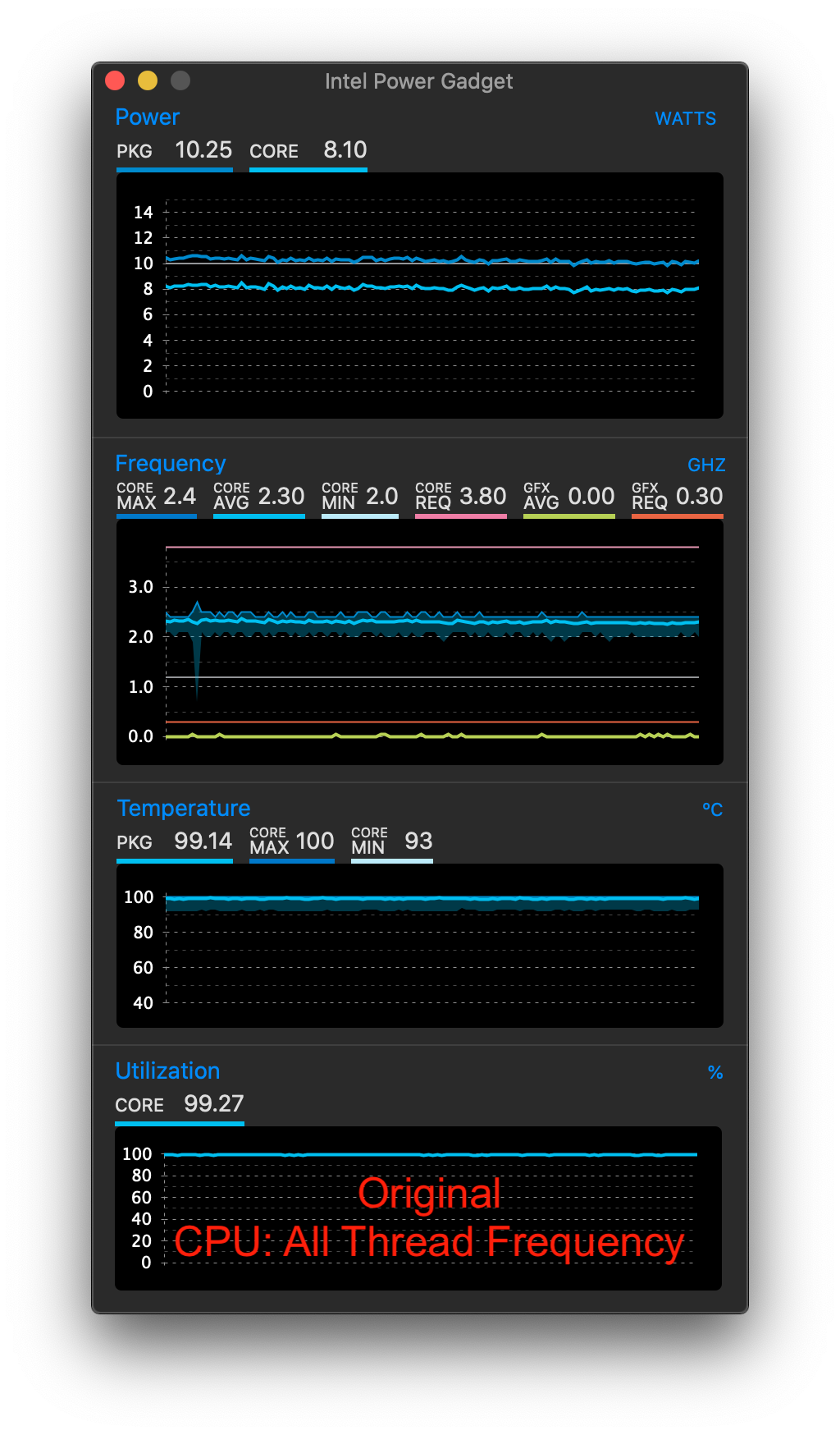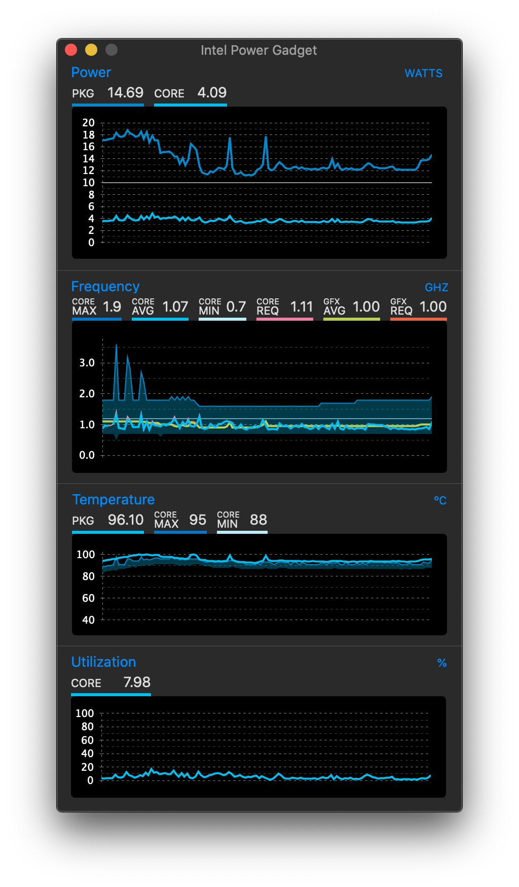 @Robotronic The consequence of limiting the airflow over the batteries didn't cross my mind, but below is a screenshot of the temps from Macs Fan Control just before I stopped the wind channel stress test. Do you see anything out of the ordinary?