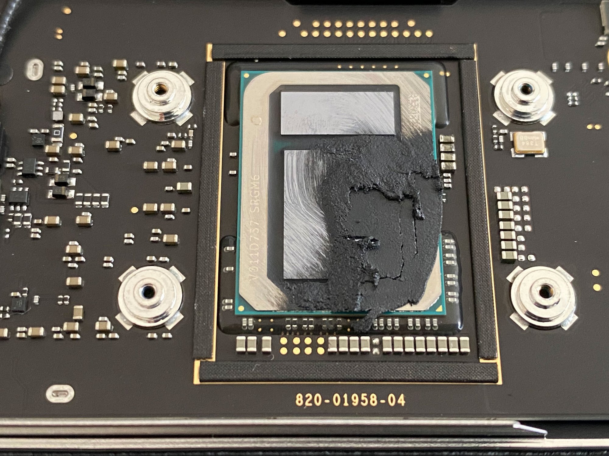 After I've removed the back cover and the heatsink, I've discovered the familiar blob of the black paste that everyone here has seen already.