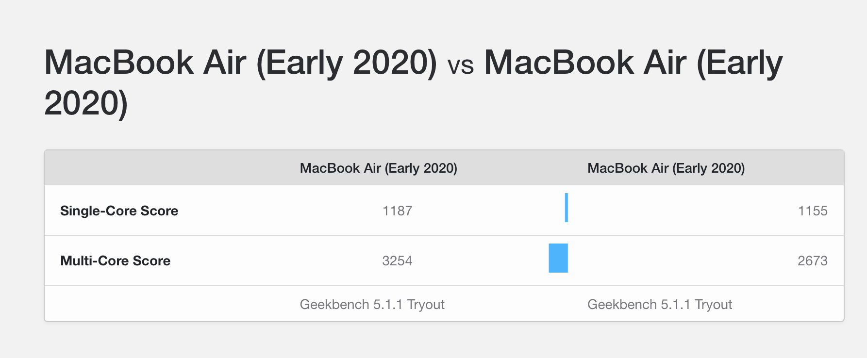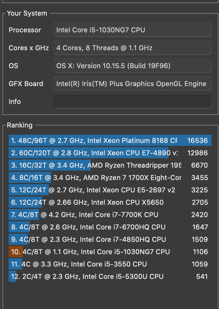 Single core score Improvement vs pre mod Multi core score Improvement vs pre mod Pre mod (10.15.3) 1168 2784 Pre mod (10.15.5) 1159 -0.77% 2926 5.10% CPU shim 1284 10.79% 3310 13.12% CPU shim + heat pad 1283 10.70% 3990 36.36%