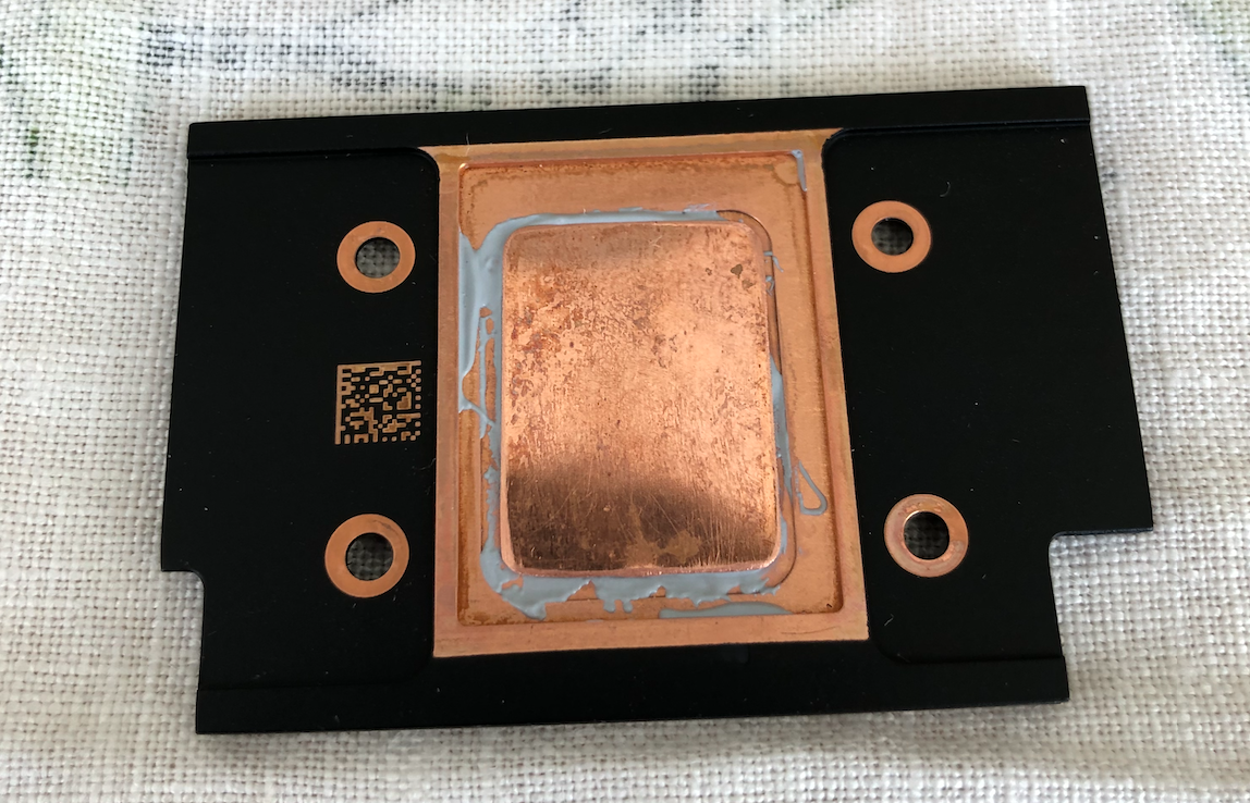 I used Kryonaut Thermal Grizzly. It was a 1-2 years old tube that I had at home, and it was slightly thicker than I remember (possibly due to it's age), which I think made it slightly harder to spread it in an even layer. In the end I had to accept that I wouldn't get a perfectly thin layer, since every time I fixed a spot a new one opened somewhere else.