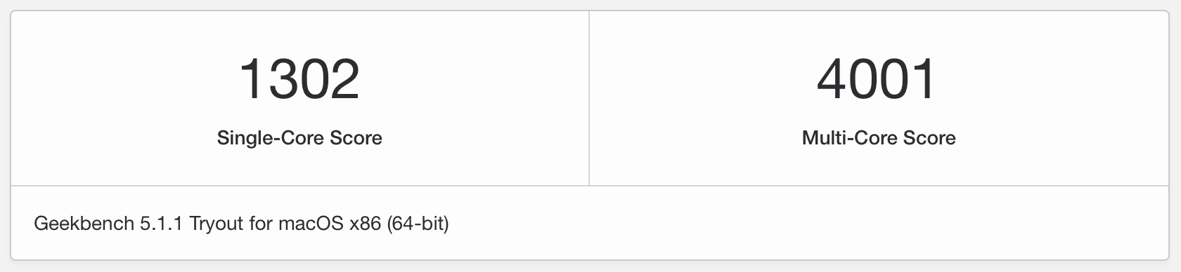One thing that bothered me is that I couldn't get my Geekbench multi-core score above 4000, while even the i5 models have recently managed to climb over it. I've run all the previous tests on macOS 10.15.4, so I didn't update to the 10.15.5 for the resting to make sure it didn't affect the outcome. But after all the tests were done, I've updated the macOS and ran Geekbench 3 again a few times. Below is the average of 4 runs.