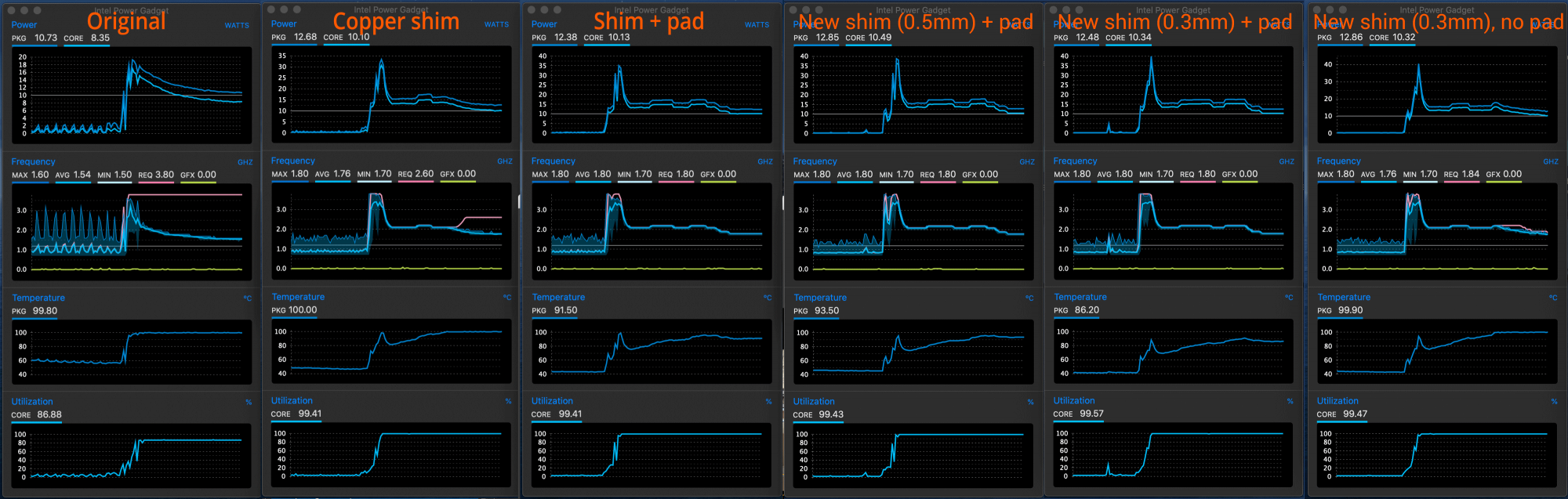 As you can see, 0.5mm shim performs slightly worse than 0.3mm, but all in all the difference in negligible. I do like that the top multi-core result is the whopping