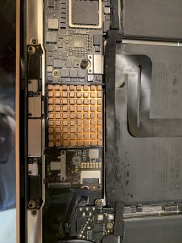 The 2020 MBA largely shares the same chassis as the 2018 MBA. Apple and the rest of the industry had planned for more power-efficient chips from Intel by this point, so Apple made the 2018 MBA chassis with a fan, but no heat pipe. The problem is those power-efficient chips never came. I wonder if Apple initially tested the i5 CPU as the base model CPU, but it turned out to run hotter than what Apple (and Intel) expected when Apple designed the chassis years ago. Intel then offered the i3 to Apple as an option to lower heat (and cost). Apple tried many heat sink designs, but they all ran hot. In the end, they went with the lightest heat sink tested: one with less copper and more paste. Apple might have been more sensitive to weight because the 2020 MBA is already thicker and heavier due to the switch to the Magic Keyboard. Then, Apple and Intel were about to have a huge fight, but looked deep into each other's eyes and kissed.
