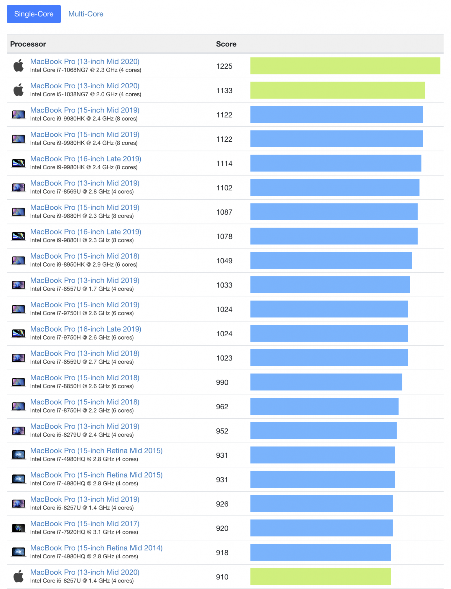 @Mike Boreham said, it depends on the number of cores active. It is actually quite tricky to have only a single core active, since the CPU is often doing something else (even intermittently) in the background. One way to test is using Intel Power Gadget to monitor, and running a "Yes" test: Launch Terminal. Type: yes > /dev/null &