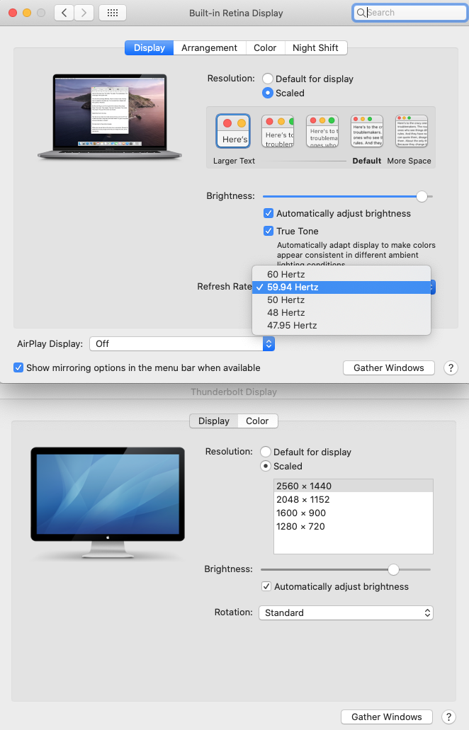 Can you tell me how to change refresh rate on my monitor ?if it is possible, i request a favor from you. If your external display have 120 or 144hz refresh rate. Could you please make a video record on both monitors during scrolling in same web page and upload it (not in mirror screens mode)