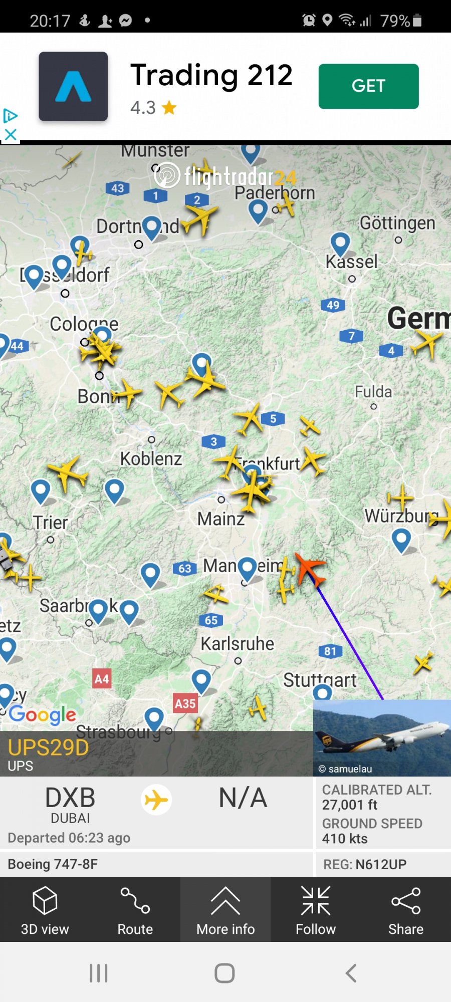 Cologne to the UK is an hour!I saw that. I though it will come from Dubai. This is the flight schdelue for UPS 127 but I did not know what will happend next.