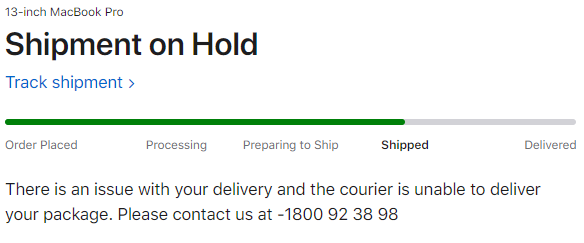 Apple website is saying "Shipment on Hold" already has 2 days, and that I should contact their support. I did it, and the guy just said that it's alright and on it's way.