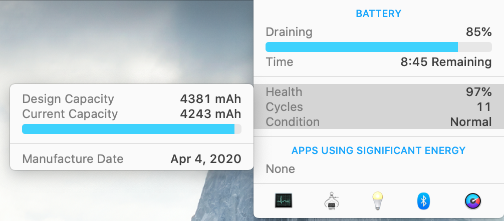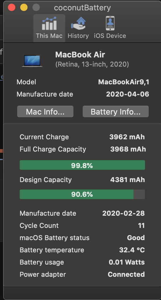 I've had my MBA for a couple months now and am seeing a precipitous drop in my battery health. This is what CoconutBattery gives me when I use the "compare" feature. The upshot is, I've got 46 cycles on it and it's already down to 91% capacity. At this rate it'll be pretty much junk in six months. Curious to see if anyone else is getting battery wear like this.