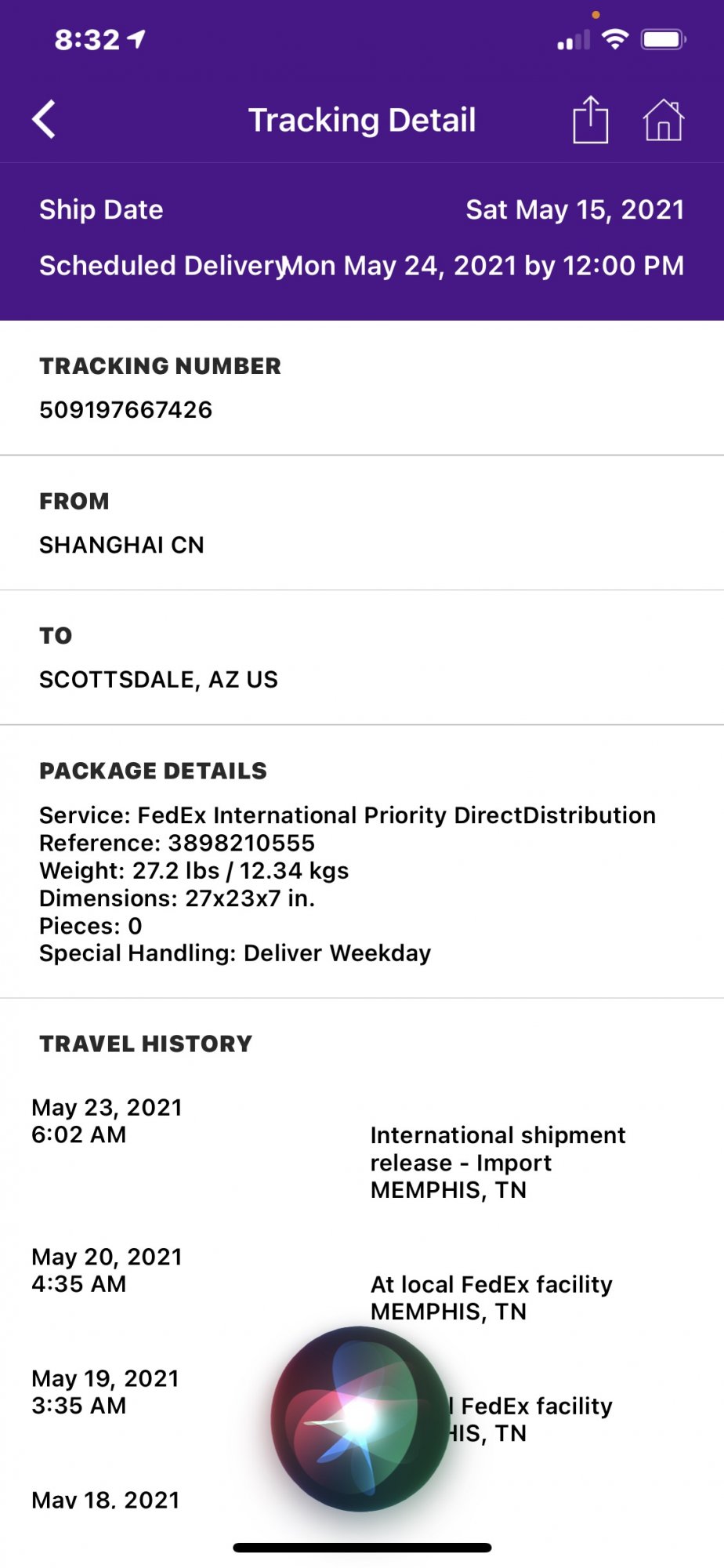 Sorry, I never tracked it. All of a sudden the delivery date changed from a May 24th delivery, to May 21st. I wonder if they just 'found' one on the shelf? Another thing I noticed: both the M1 Mac mini and the M1 iMac were showing up on my Apple Card balance due ... I paid the balance before the iMac was delivered (Mac mini was delivered two weeks before)!Was yours tracked from China or did it originate from PA ?