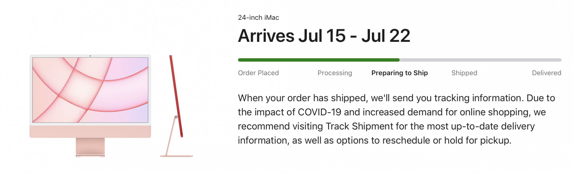 I ordered a 8/8/16/512 Grey on 13/6, so five days before the example above, and ETA is 26/7-3/8. Similarly I saw a same spec as mine but in Orange which also had an earlier relative delivery date.