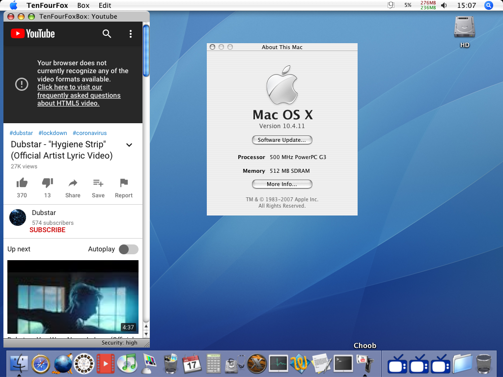 A word of warning - not every video on Youtube will be available in the formats this utility employs, so there may be errors but as you can see in the screenshots, 66% CPU on a 500Mhz G3 iMac for 240P video with high quality m4a audio isn't too shabby!