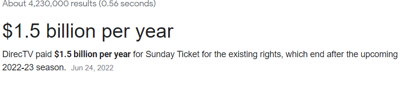 Have to love the NFL.Report: YouTube to pay $2.5 billion per year for Sunday Ticket