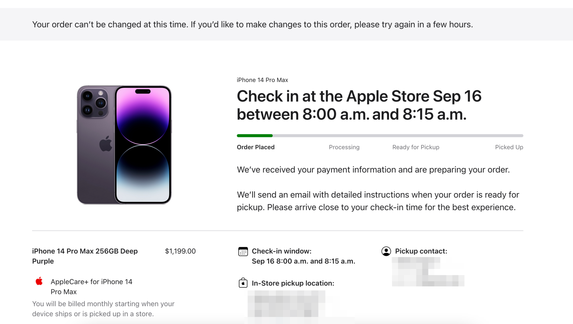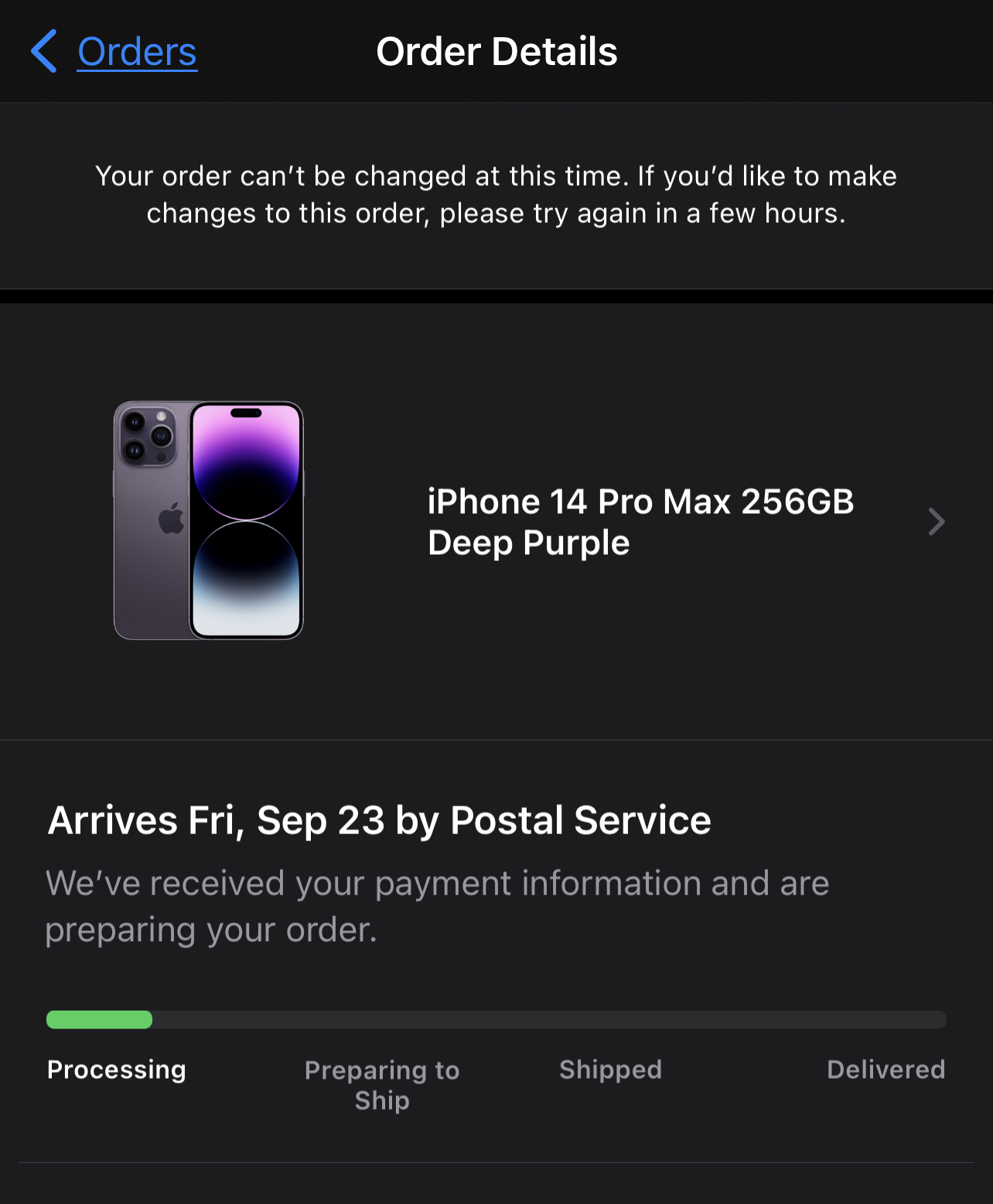 Congratulations. Got in right at 7 am local and was out before a minute got confirmation of my 1TB space black Pro Max at 7:01. We will be on same flight together let the party begin LOL. Very smooth this year and refreshing got me in started at a minute too got the almost there on ipad and iphone and seconds later at 7 precisely went right to my setup preorder boom.Done at 5:05AM!!! Ordered 2 iPhones 1TB for myself. But I'm keeping the purple one. Let's go!!!!