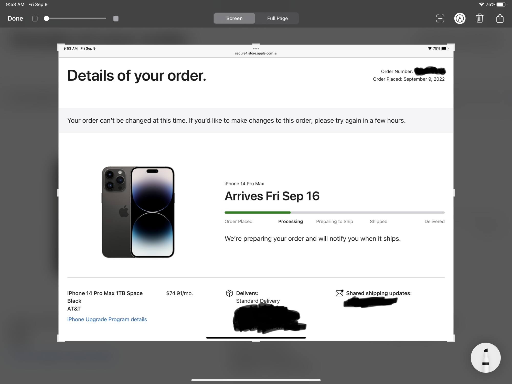 I did the same thing.I’m picking mine up at Apple store next Friday at 8:15 am. If I let them deliver it to my home, I always get it after 3pm. Besides I don’t like to be stuck at home all day waiting.