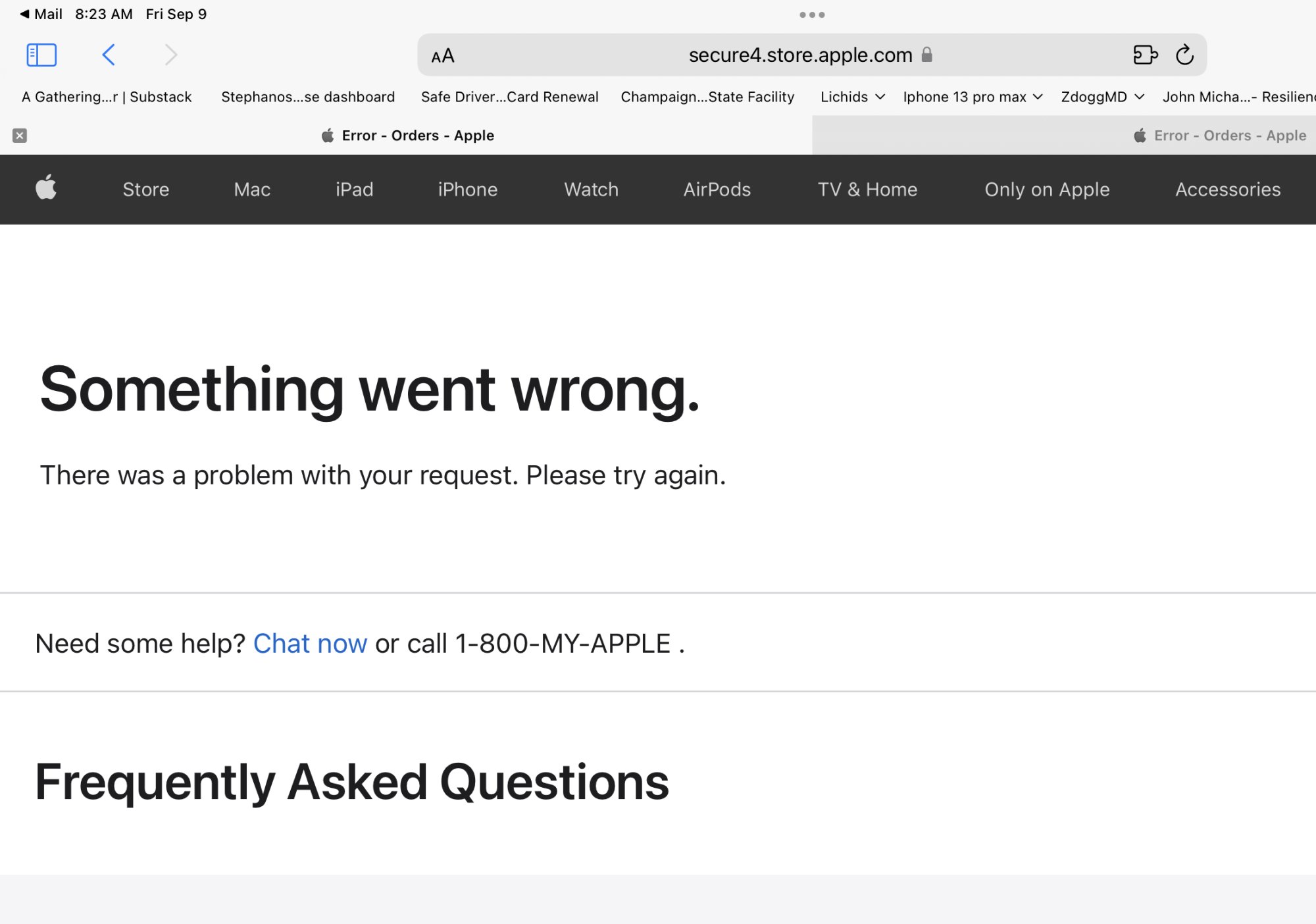 However I went through the browser store app in my account and sure enough one more darn place with old card. I updated it but sure enough the order, and servers are not finding that I corrected this one location. I had corrected in in Apple Pay to new card, ad on the apple store app via my phone so supposedly everywhere the card was updated. But why through the website version of store my card was still old info I will never know.