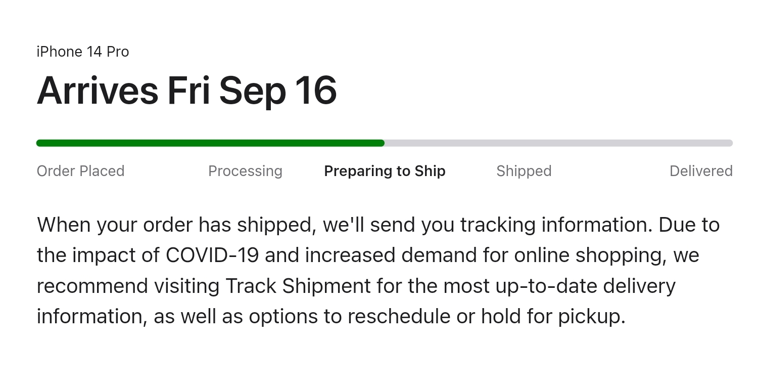 Me too. I must remember to NOT delete the Apple Store app this year in frustration! ššMine is still Order in Progress... hmmm