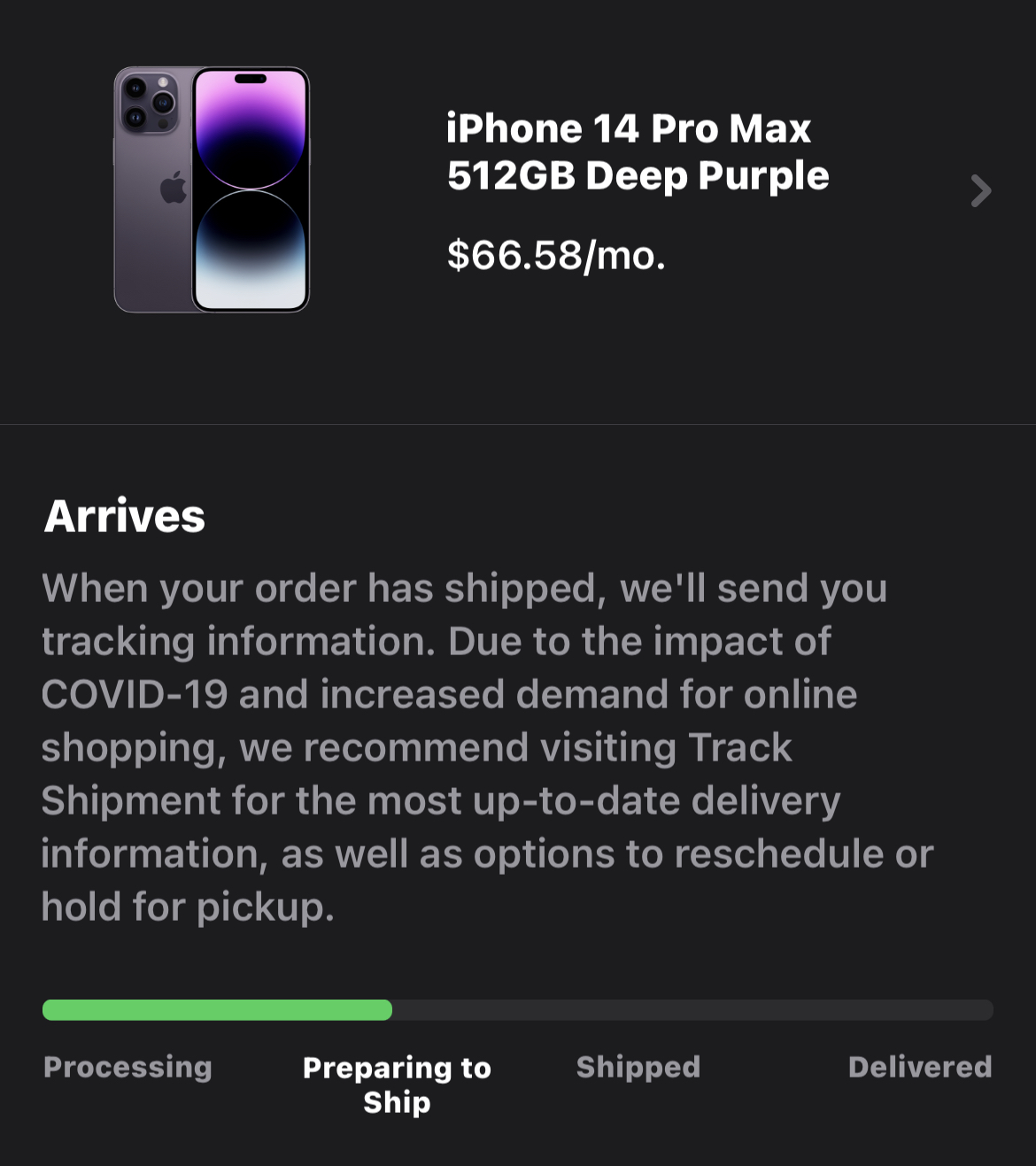 I don't want to sound like I'm bragging, but my 14 Pro is preparing to ship. šView attachment 2055690