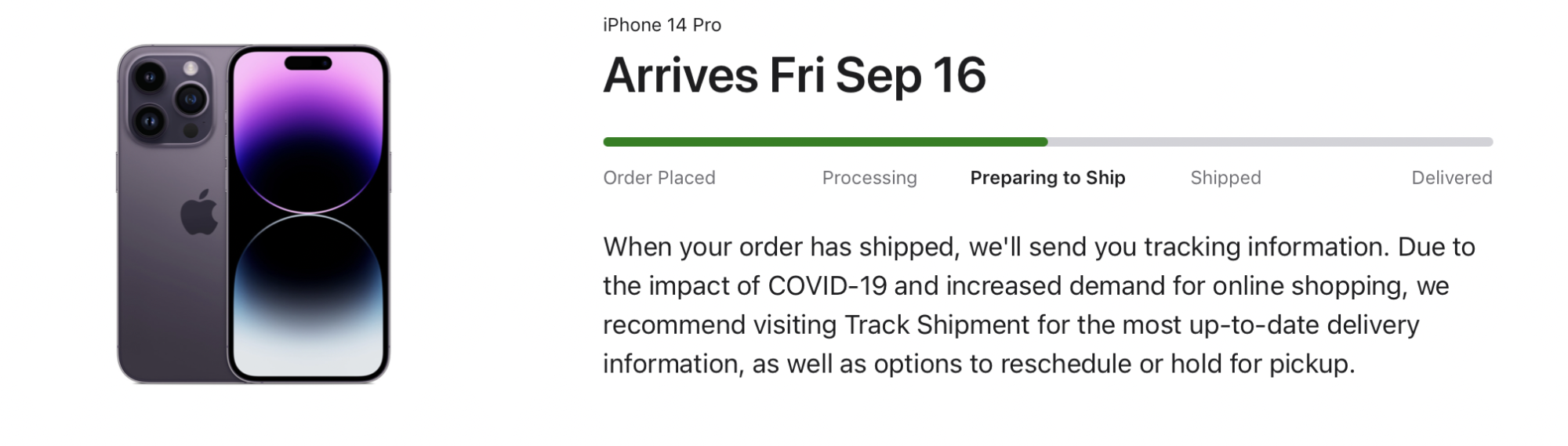 It could be because of the Holiday coming up for Harvest Moon. There's an extra day off. So maybe Apple is pushing it through. The logistic team in China has all of this planned out. They go by it accordingly.Same. Feels like the earliest preparing to ship I can recall. I could be misremembering.