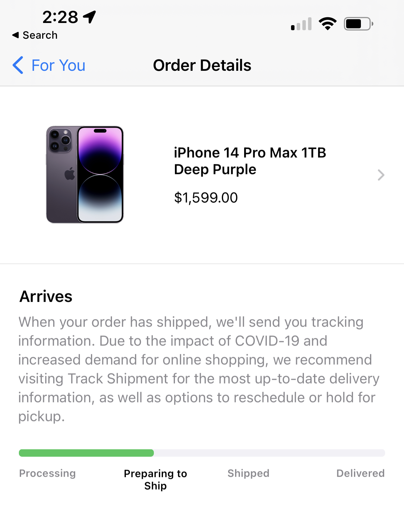 Dang! This is a wild story. Hopefully, it all works out for you. The struggle was extra real for you. Sheeeesh! I got goose bumps reading your story.This was theeeee absolute most difficult pre-ordering experience I’ve had…and I upgrade every year. The TL;DR is that I still managed to get what I wanted, a Dark Purple 128gb 14 Pro with release day pickup. The too long version is that it took forever, and I currently have 2 orders for it. I did the pre-pre order through the app so I could speed through my worst-case scenario order if needed, and it turns out I did. I had 1) military discount, which you can’t get through the app (nor can you use it with Apple Card financing, but I’ll come back to that), and 2) a $354 Apple Account balance that I wanted to use. Well, my first attempts were through the website, which I couldn’t even access until ~8:15EST. While waiting for that, I tried several times to complete the “Get Ready” I’d done through the app. Kept getting to payment and it failed authorization…for all 3 methods I attempted. One I could understand (my Discover tends to err on the side of caution and send a text asking if I attempted a transaction), but the other 2 should have had no problems. One was my Apple Card that has a zero balance (but is still active)! Apple Pay wouldn’t work. Credit cards wouldn’t work. When I finally got in through the app…same thing. Finally about 8:50 I was able to get it through in the app; not ideal as it was the monthly financing which I didn’t want to do because I couldn’t get the $100 mil disc nor use my Apple Account balance. But I’d rather do that than nothing. Even after placing that order, I tried several more times to place an order through the military storefront and that FINALLY went through about 10:50. And still for Sept 16 pickup. That was my ideal situation as I was able to get the $899 price and use my $354 balance. The other piece is that we will be traveling; we check out of our hotel in Orlando that day to head to TN. The earliest I was able to get for pickup by that point was 2:45pm but I did order a watch yesterday with an 11:00 time slot so hopefully they’ll take pity on me and give me both then or my husband is gonna be PISSED that we’re not at least 3 hours down the road by then 😂