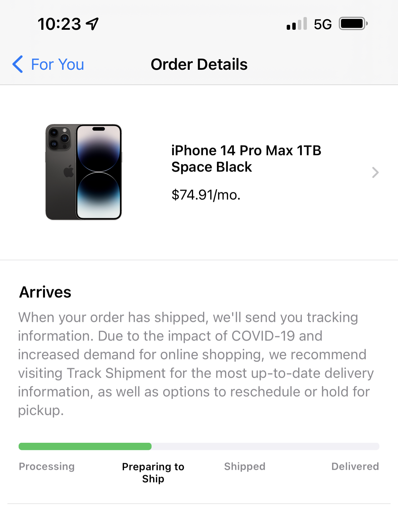 I’m going to consider you don’t count anymore lol. Apple is treating you with total royalty haha! I’m shocked and surprised your 1TB shipped. Because mine didn’t and it’s the same model!!! Didn’t even get a tracking number.