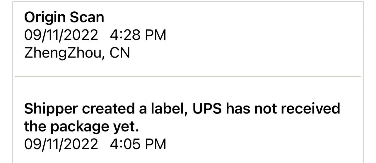 Checked the UPS app, delivery on 9/16!