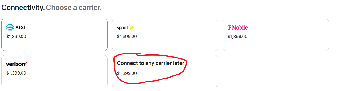 When I preordered, I selected the circled option (it shows up on the app/mobile as "Unconnected" and here on desktop view as "Connect to any carrier later").I’m very sorry. Not part of the pre-order launch iPhones. However, you are not too far out. Hopefully, you get a movement soon.