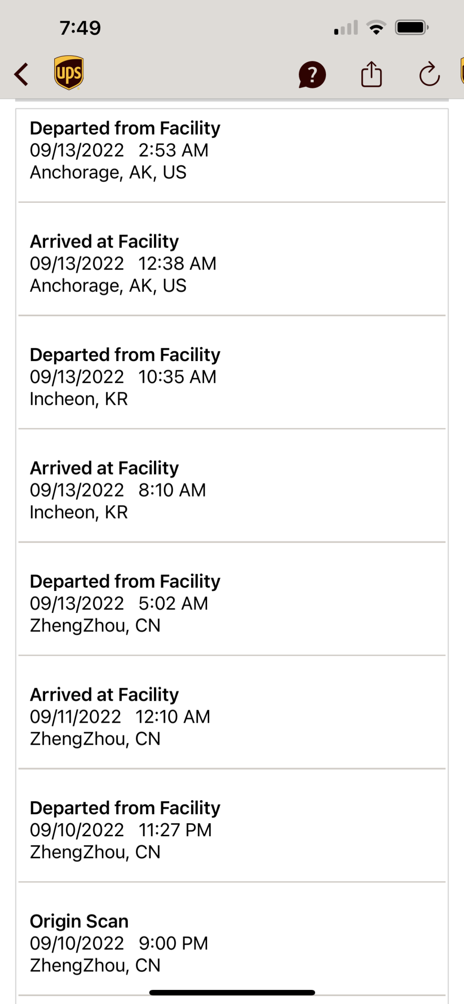 Good point.No warehousing in AK, just a fuel stop. They have to keep those planes in the air, so we will sit in KY until Thursday. I caught an early flight a few years ago and thatās what my tracking showed.