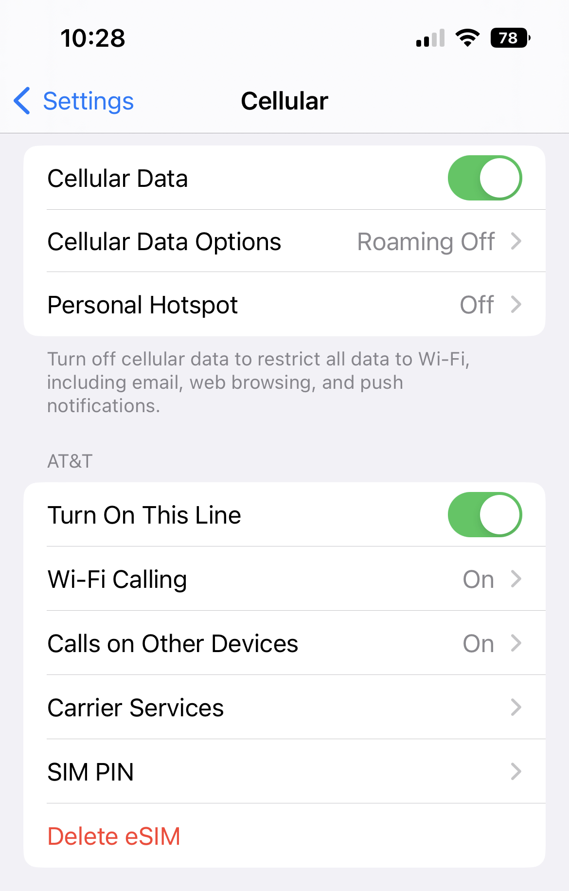 I do see the “Delete eSIM” option, I forgot the 13 Pros shipped without the physical SIM 🤦🏻♂️Check if there's a SIM card? I believe last year when Apple shipped out the 13 Pros, there were no SIM cards and everything we eSIM. This is what I see when I go into Settings -> Cellular: