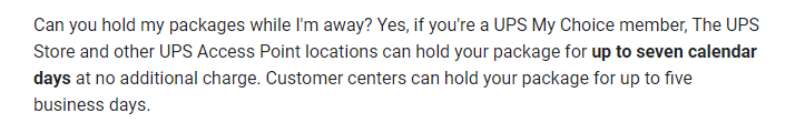 Correct.UPS store is more convenient. 5 min away. Store will hold for 5 days?