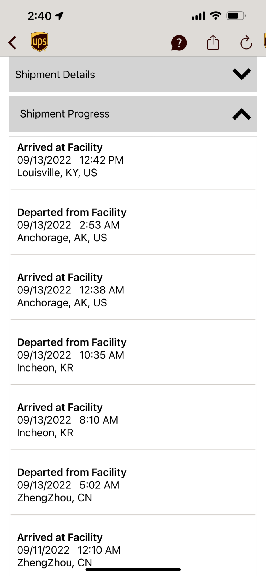 Appears N622UP (Flight 5X176) arrived ZHCC around 1:05 local time.