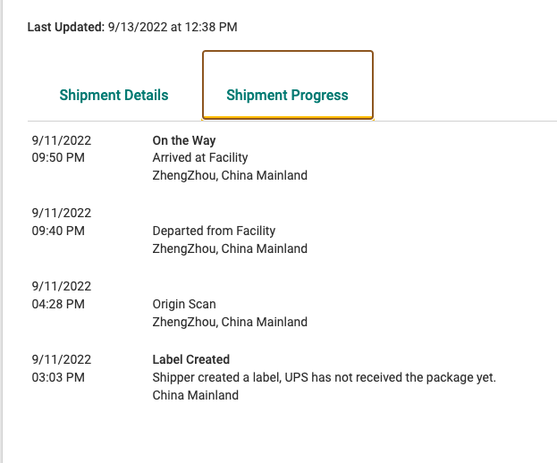 My tracking has the same as yours with the date and times... but the Kentucky movement hasn't popped up yet. My last tracking was Arrived a facility on 9/11/22 at 950PM