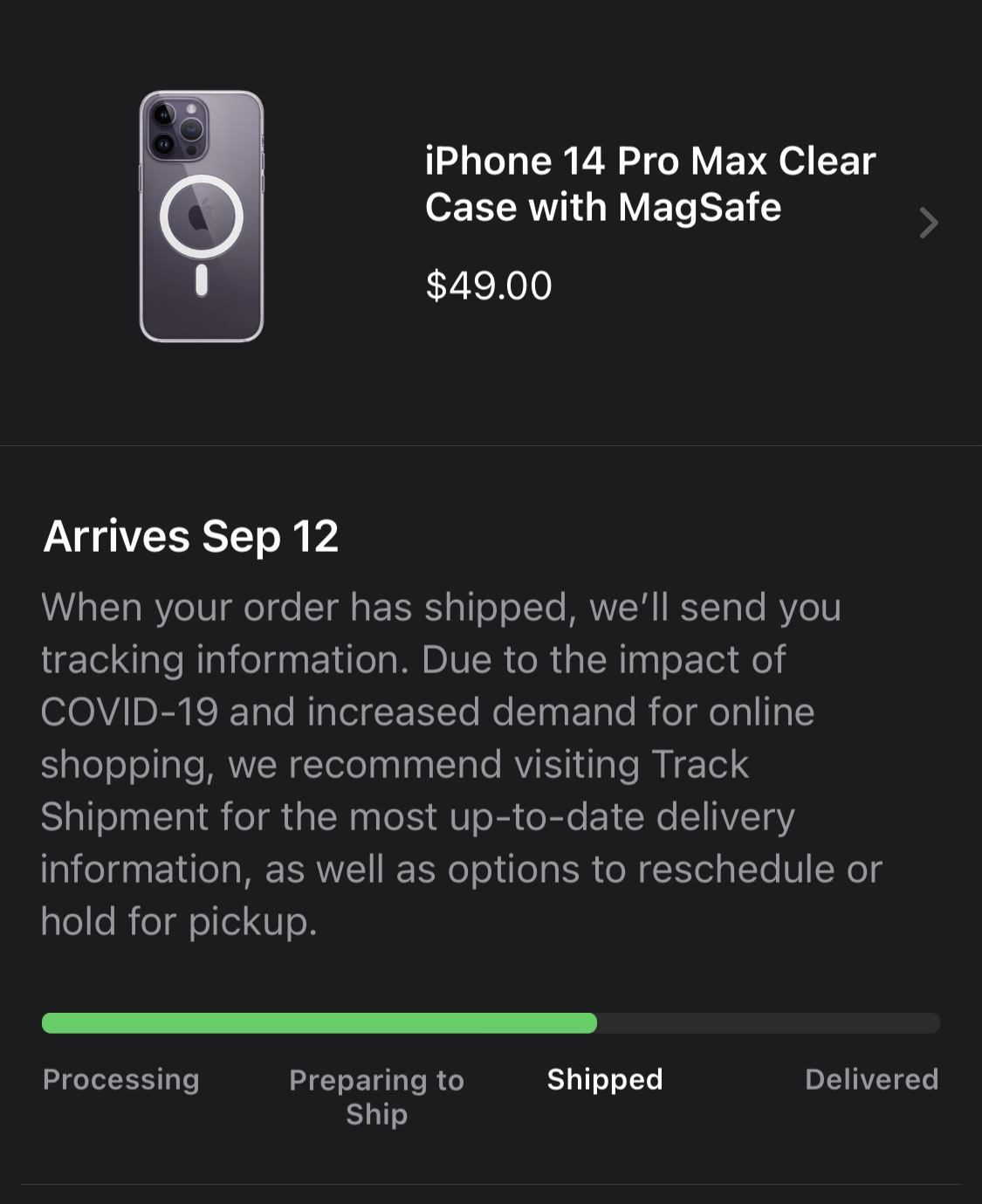 I agree. Not sure how it's going to pan out this year with the political tensions with the US and China import/export business.And the Chinese Customs work as part of the phones travel out of Foxconn through UPS. Those can get us those 3 plus days delays depending on how things work. I do worry given the political tensions with US and China if this will slow things down hopefully not (yep already worrying and I have not even done the final click for tomorrow yet LOL)
