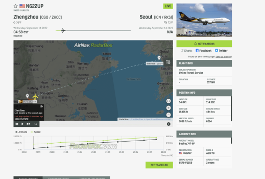 That is likely a loaded 748, definitely from ZHCC, it spent about 3.5 hrs on the ground in ZHCC and is almost to RKSI, given no one has had a recent ZZ departure scan, it maybe a safe assumption that until the containers bound for the US are sorted from the other countries they are bound to (likely what happens at RKSI instead of a direct to PANC flight), tracking data may be batched, I've seen it happen, although less and less as near real time systems and event driven architectures become more prevalent in ERP.
