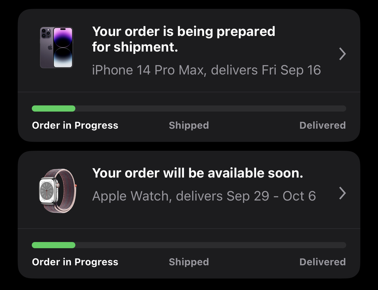 I have sept 26-28. No movement on my end.Day 1 ordered at 8:25am east coast after all the errors I received for the 14 Pro Max. I have a date of 10-3 to 10-10. Anyone else?