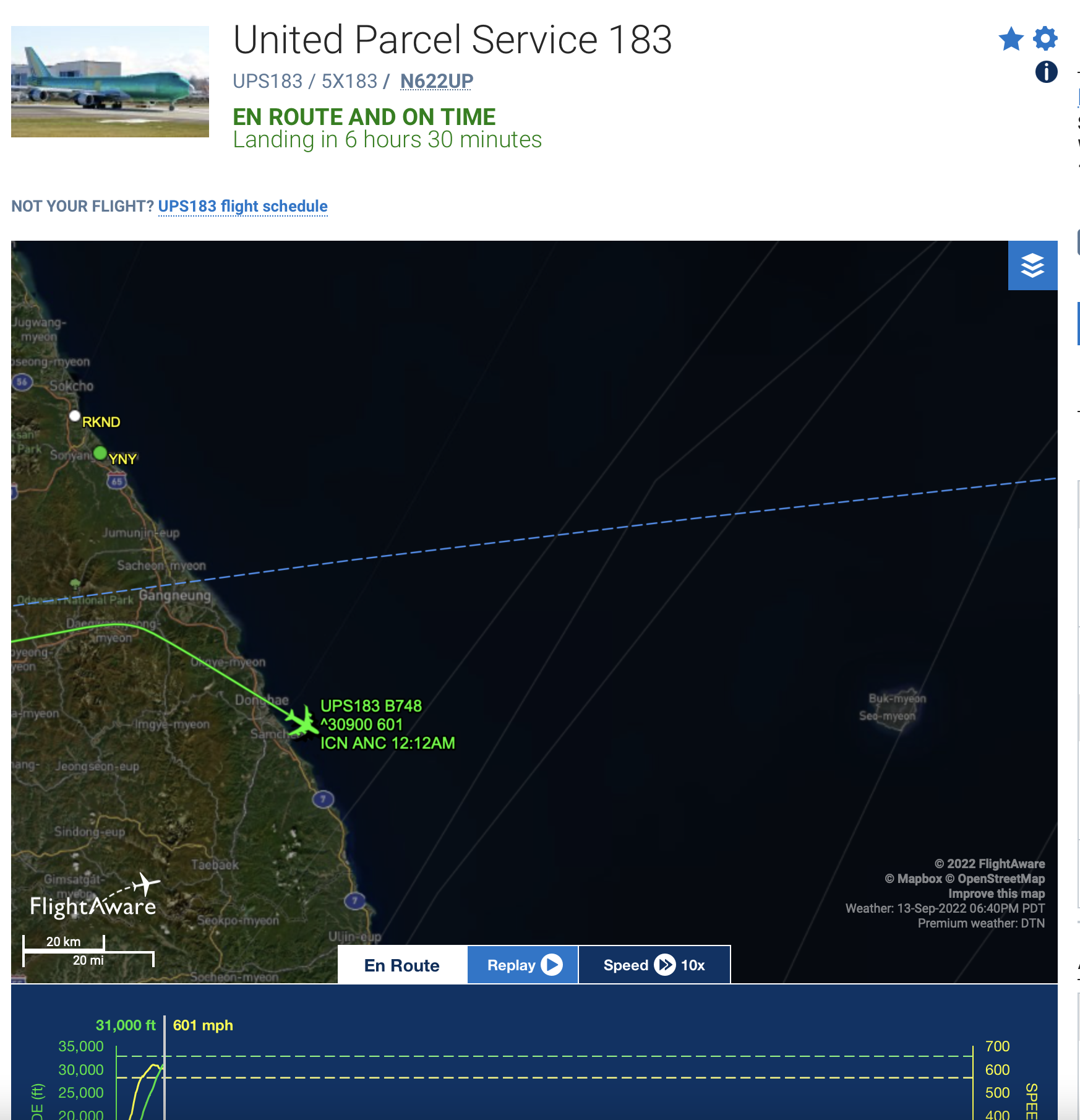 5X183 (UPS183) United Parcel Service Flight Tracking and History 14-Sep-2022 (ICN / RKSI-PANC) - FlightAware