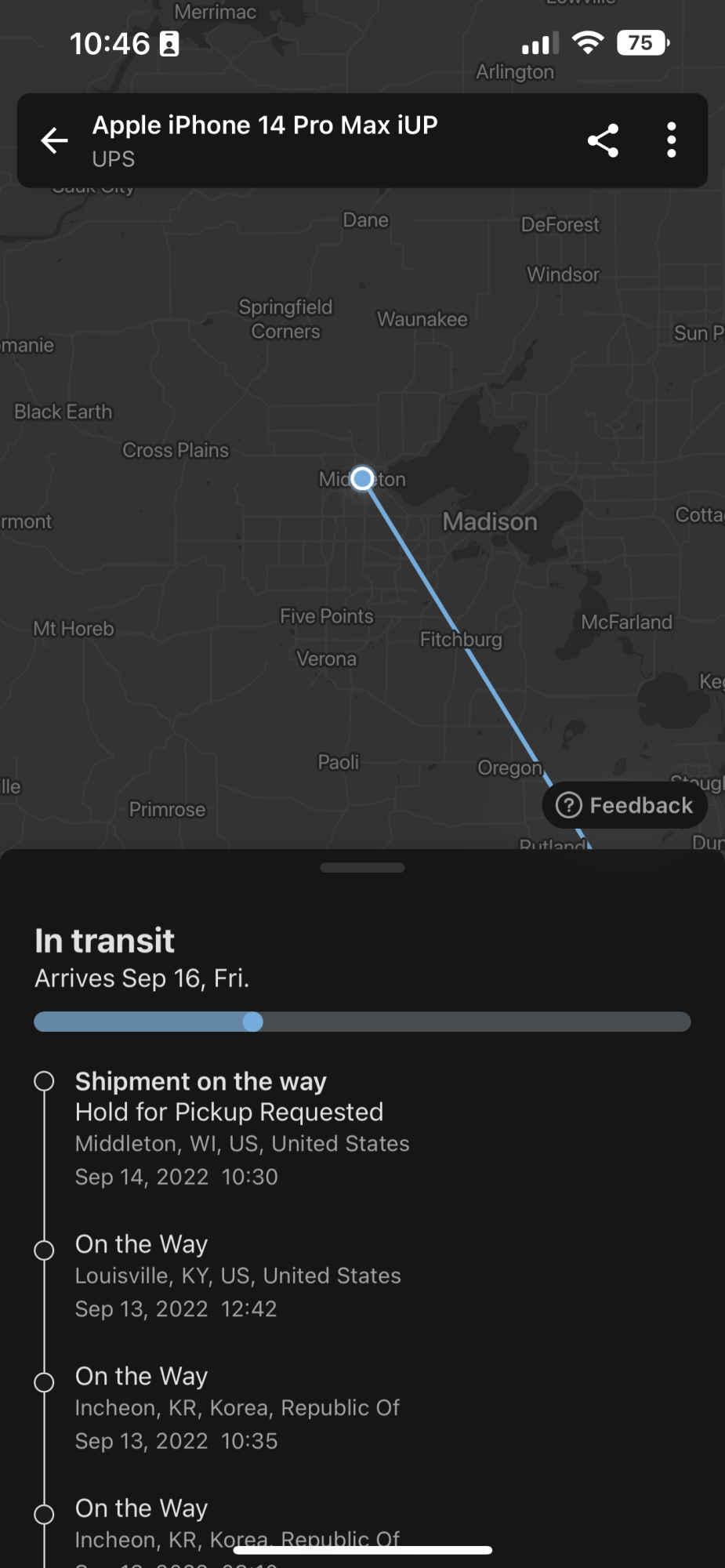 My shipment (destination NJ, USA) is in Louisville, KY, United States since yesterday 9/13.I think UPS has some reporting issues....View attachment 2062230