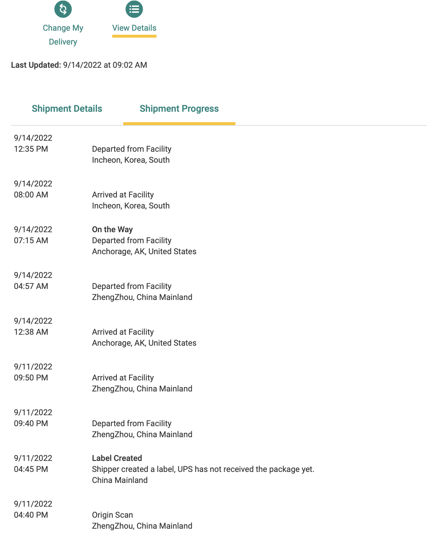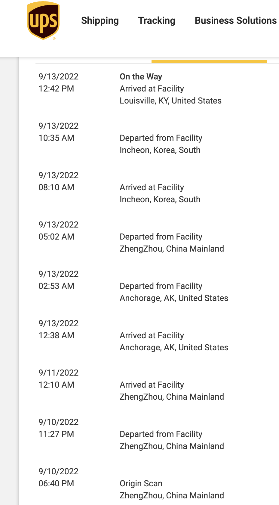 It shows out of order because it's sorting by the time and date, but you have to remember that the scans in Korea happened essentially later in the day today because when they were scanned in their local time it was already into the day on the 14th. UPS only shows scans in local time, not relative to where you are looking up the data.I think UPS has some reporting issues....View attachment 2062230