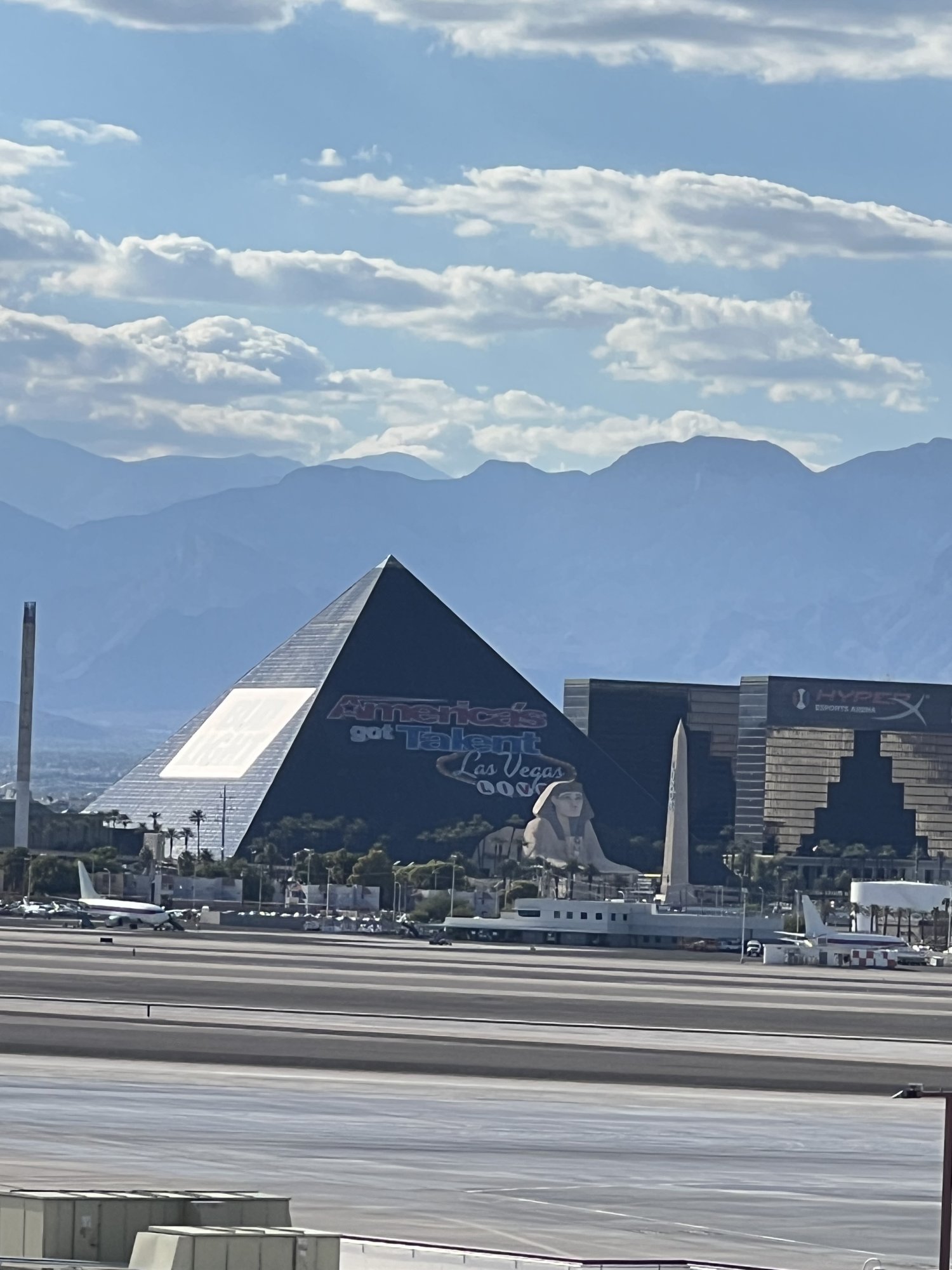 You can try but they are hard to spot and you can track them as we do. Some airlines show up and some don’t but when you come to Vegas just look across Luxor Hotel and casino.I had no idea about these planes last time I was in Vegas. Will def look out for them next time.