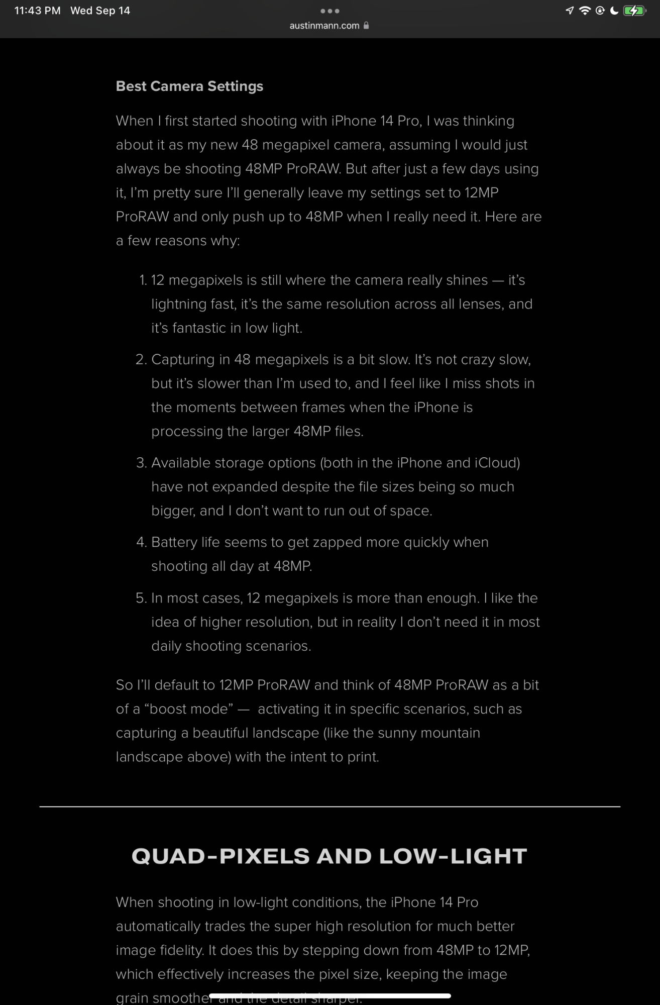 It’s up!I’m eager to read Austin Mann’s review of the new 14 pro camera