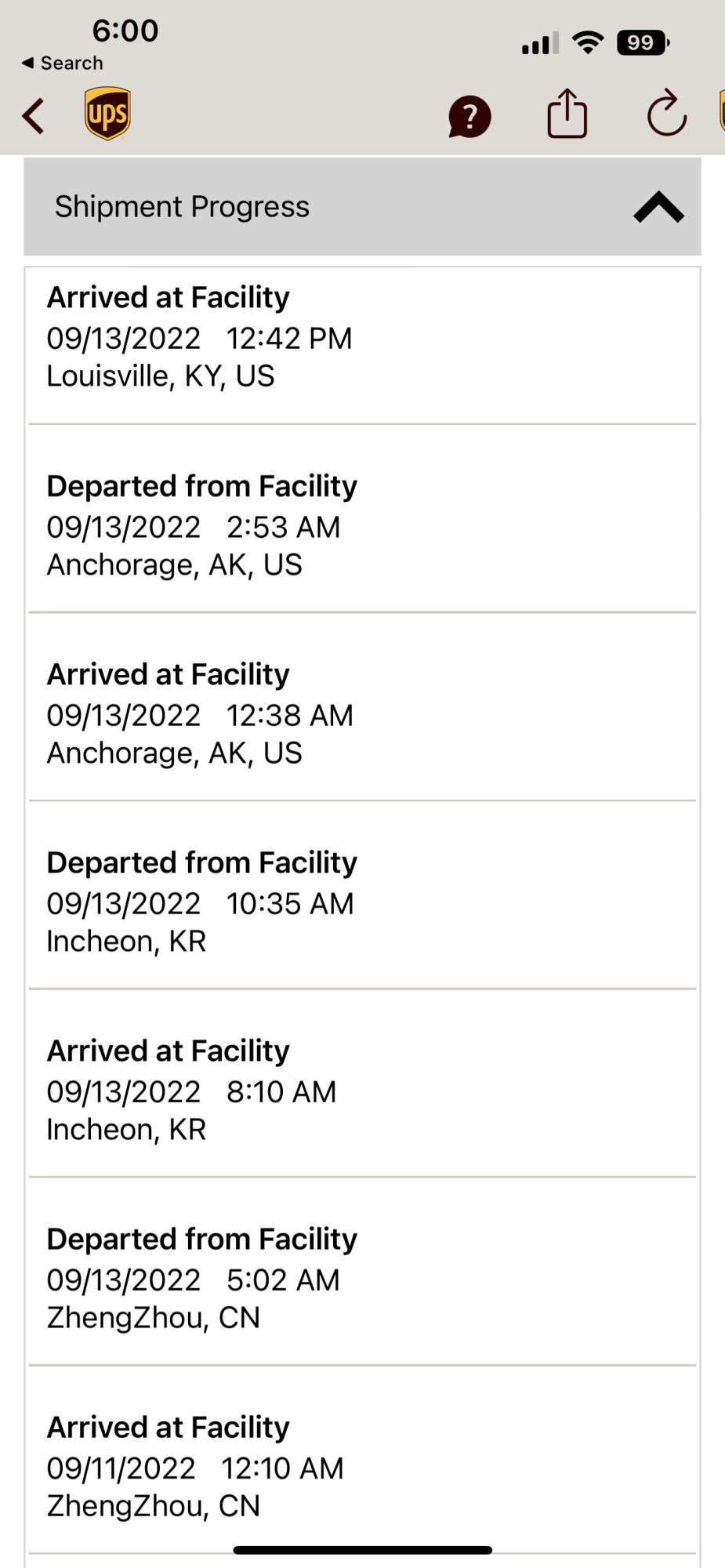 Still no arrival scan in Louisville. Beginning to get concerned.