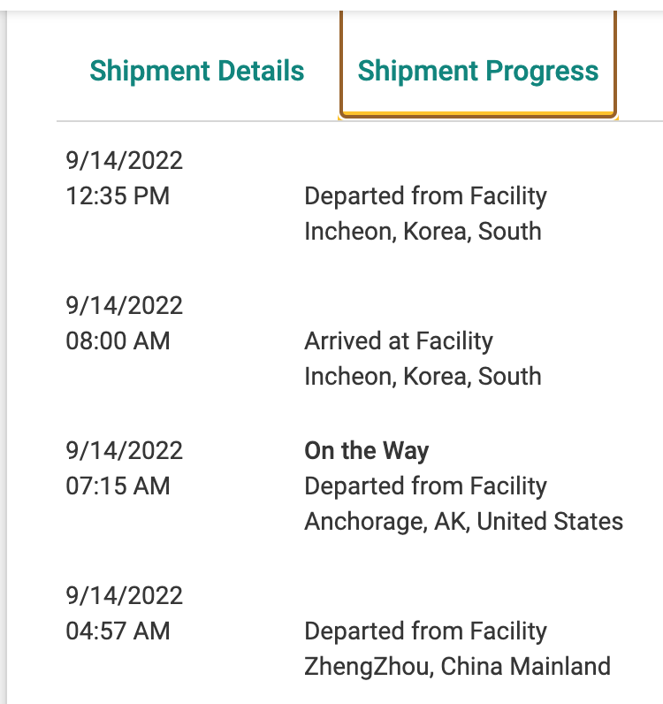 You should be in Louisville, yours was on my flight out of Incheon. Weird that they didn't give you the notification that it landed in Anchorage.Mine is not doing well. I got a notification and email from Apple that it shipped but Apple's site still shows Preparing. UPS shows it has left Korea but has not landed anywhere! The tracking is "all over the place"!! View attachment 2063652
