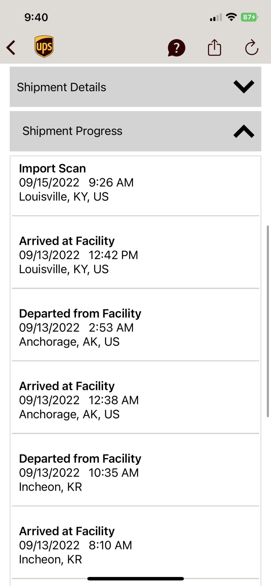 My Apple order page says shipped but my UPS page still says departed anchorage yesterday morning lol