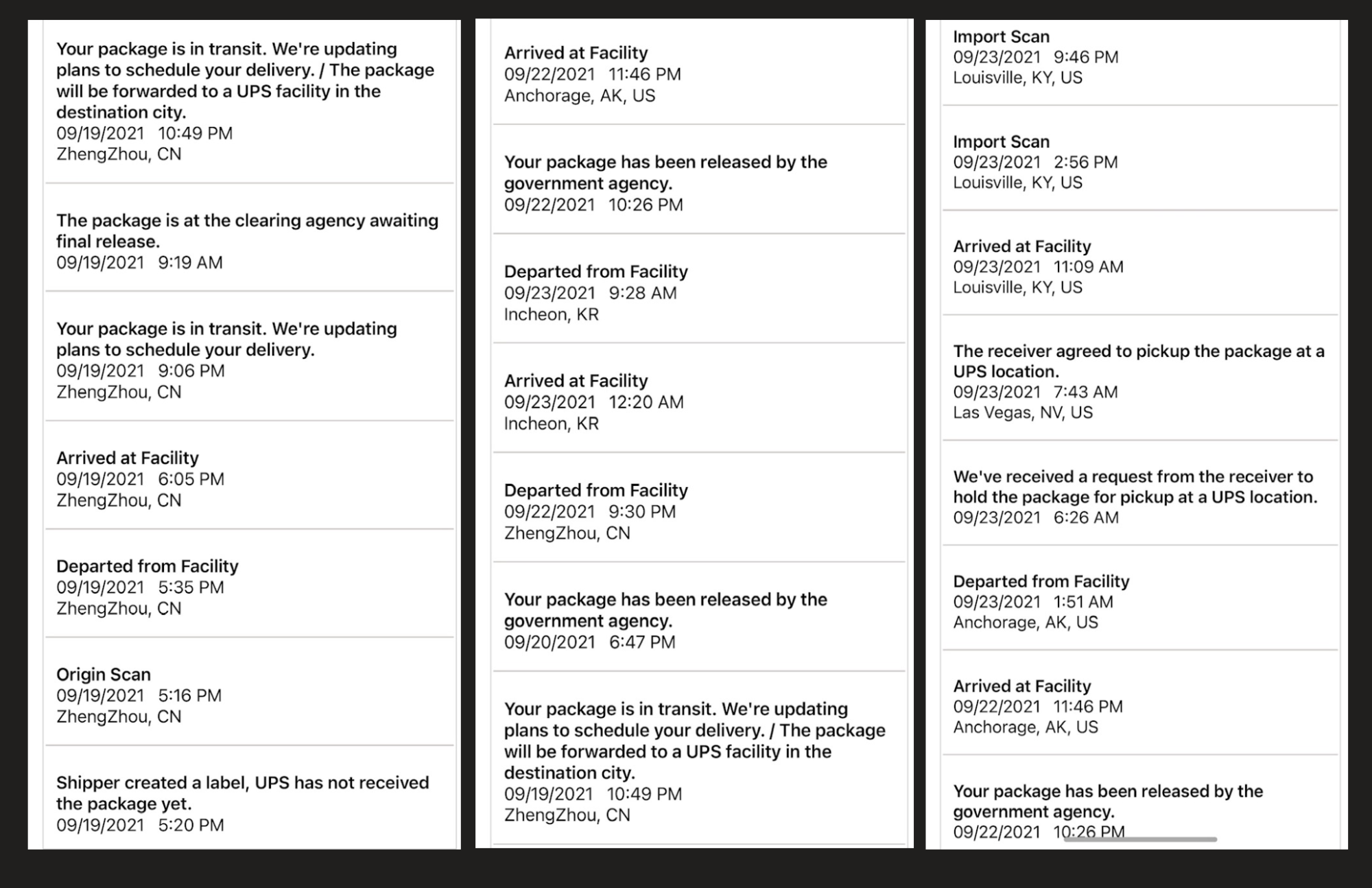 This tracking below only applies to Las Vegas, Nevada. However, we will all be traveling together from (Zhengzhou, China to Lousiville, Kentucky, USA) until we see the "Import Scan" in Louisville, Kentucky. Keep in mind some of us may be left behind in China. It happens every year. (It happened to be last year and the year before). Hopefully, this won't be the case this year. After all, goes well, we will be separated to our final destination, and from there expect a final "Departure Scan" to hit your destination airport.