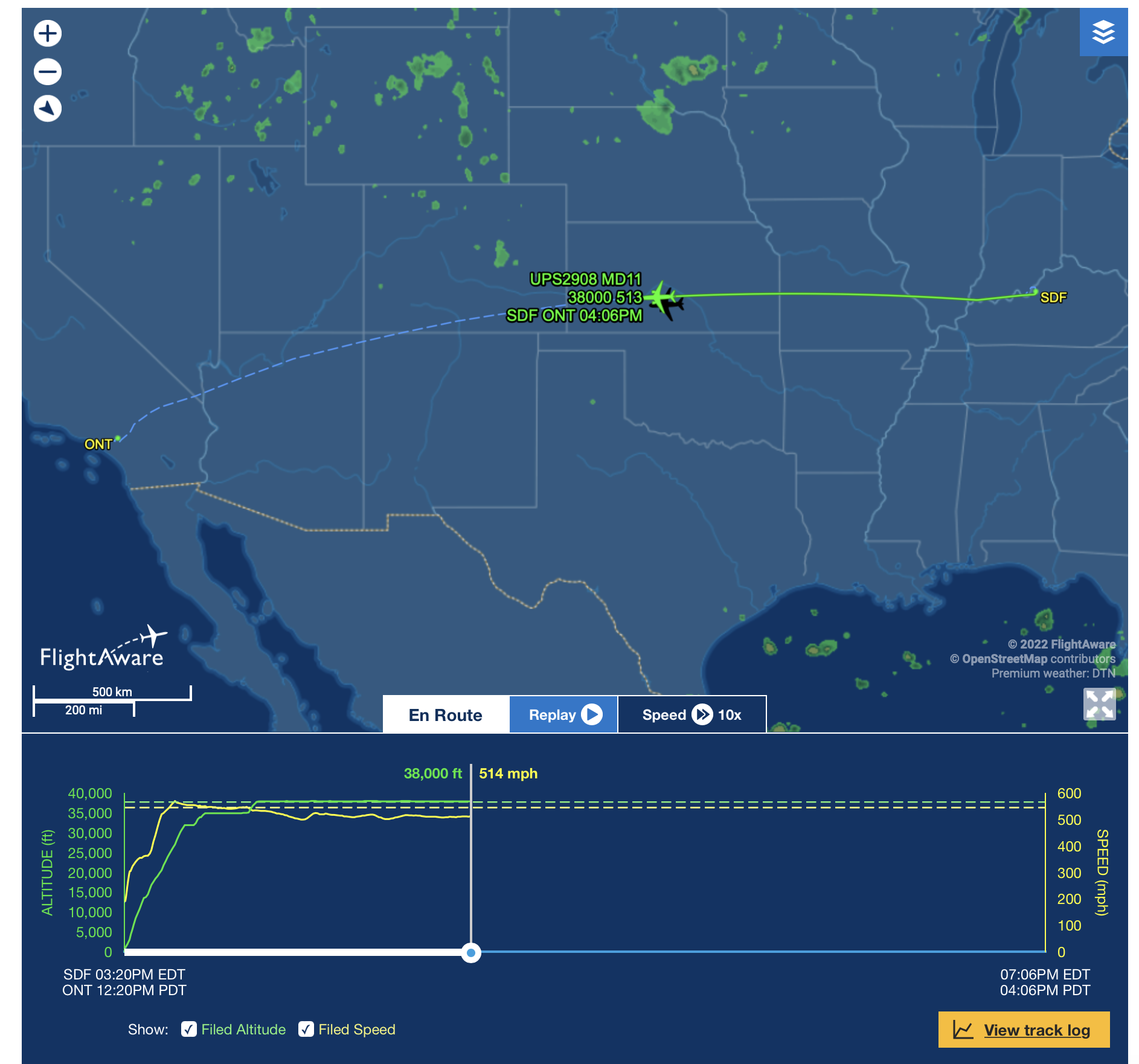 Burbank as well. Next flight is to ONT though. Just took off.UPS also uses ONT (Ontario, CA) for Los Angles metro area deliveries. I think thats the airport my phone passed through back when I was in LA proper.