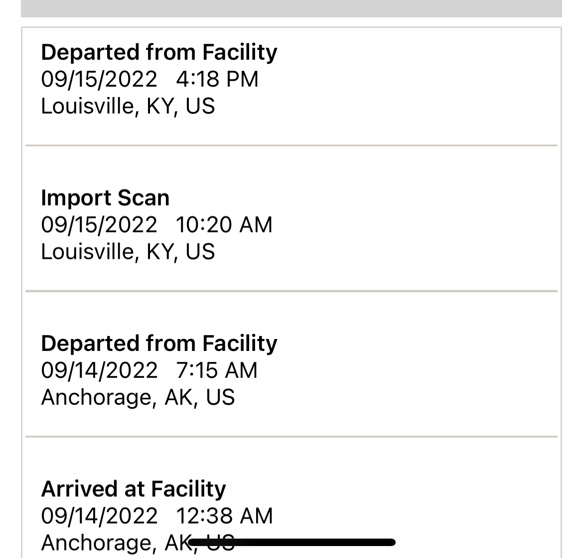 @Rafterman I'm in Rochester and I see that our UPS plane is 5AM almost daily to Buffalo but my phone departed KY at 3:39pm. Not sure where it's headed yet, perhaps JFK or LaGuiardia. Is yours a 3:39 departure as well?Planes to where I live, Buffalo NY, don't leave Louisville until 5AM.